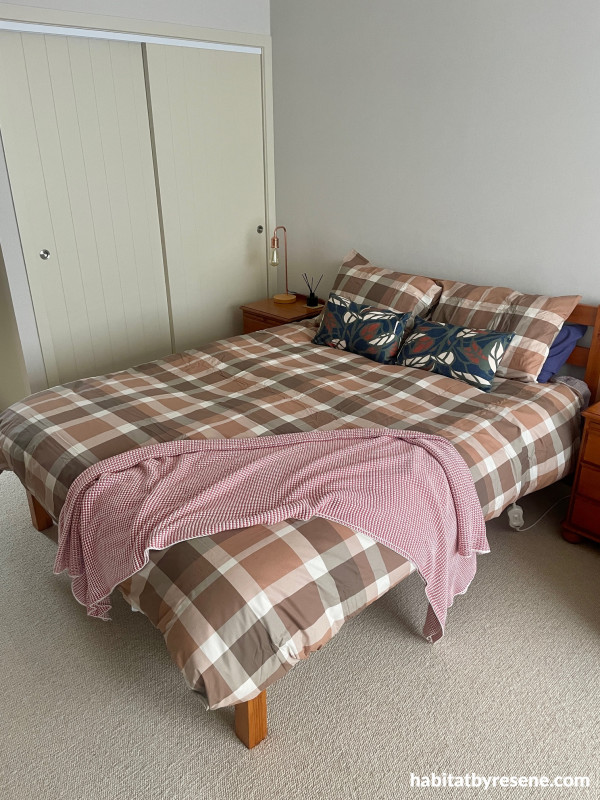 Bedroom walls in Resene Half Fossil, doors and trims in Fossil.