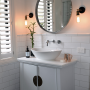 The Lotus and Lily Room share this gorgeous ensuite, painted in Resene Half Wan White. The mirror was designed by a New Zealand artist, using steel rim from around a wine barrel.