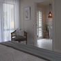 The living and communal spaces. I love the contrast of the greys and whites; it really highlights the architecture, furniture and artwork, especially in the Cherry Blossom ensuite.