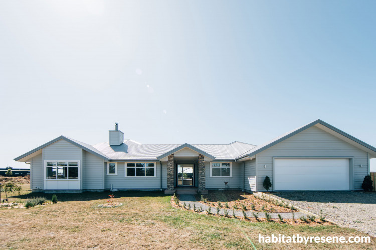 Outside, Nick and Sarah’s home is a striking vision amongst the farmlands. Painted in Resene Half Delta with window trims in Resene Half Sea Fog, the home is a perfect balance of stylish and neat, with a hint of summer vibes. “Resene Sea Fog is one of our favourite colours,” says Sarah. Resene Sea Fog is white with a hint of grey that works well with muted colours. “We’ve used it in our last two homes and it is our go to white.”