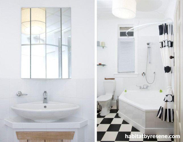 The bathroom was put together by Naomi, on what James describes as a “frankly laughably small budget”. The original had a chipped and stained iron bath and limited storage. The transformation, James says, “is a gorgeous bathroom, fit for a Remuera palace.”