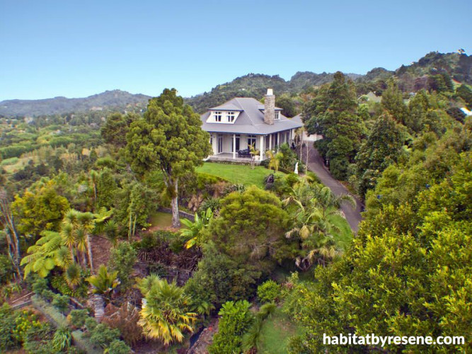 The house certainly makes an impression as you enter it via a long, meandering driveway, through subtropical trees and gorgeous gardens. Overlooking Auckland from high on a hill, the house has stunning views. It is a perfect blend of classic colonial style and modern design sensibility.