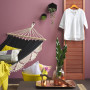 Try an on-trend smoky pink like this Resene Renaissance. Add pops of colour as accents, like the Resene Teddy basket, and an upcycled pallet table in Resene Blackout. The handy hanging-space shutter is in Resene Copper Fire.