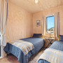 The second bedroom is inResene Colorwood Rock Salt whitewash and window trim in Resene Half Black White.
