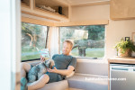 Making the most of natural and sustainable materials, this caravan has a modern and relaxed feel. Mike loves the silky velvet finishon the cabinetry provided by Resene Aquaclear satin. Benchtops are coated in durable Resene Qristal ClearFloor 1K and the birch plywood walls are finished in Resene Colorwood Whitewash. Image by Mike Eastwood.