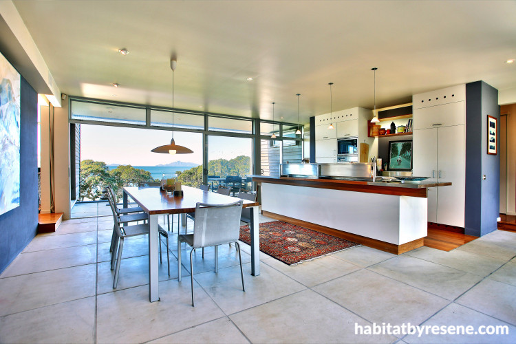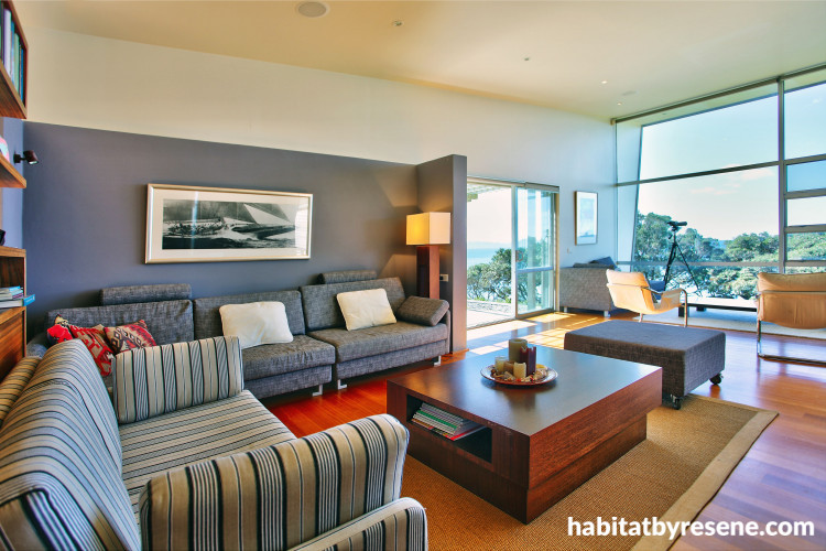 "What attracted me to the house in the first place was the way the architecture interacted with the land and water immediately below," agrees Julie. "The house is undoubtedly an architectural statement, but it is built very sympathetically into the hillside. The architects and landscape designers did a magnificent job (in my opinion!) with massive plantings of natives working in with the incumbent mature pohutakawa."