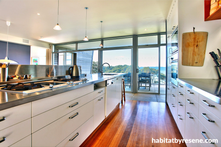 The kitchen is entirely Resene Alabaster white and stainless steel.