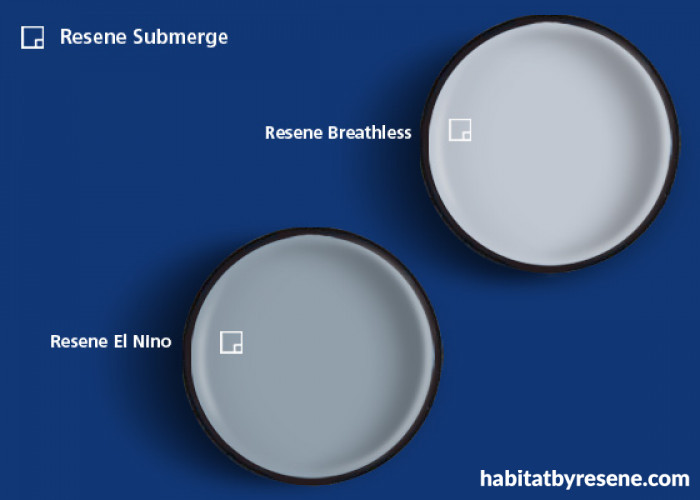 Use Resene Breathless, Resene Submerge and Resene El Nino for a rich blue palette.