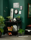 Maximalism stands firmly in the mindset that being ‘extra’ is not something to apologise for. Rich colours reign in this style and a ‘more is more’ approach is celebrated. In this space the vibrant hue of Resene Family Tree adorns the walls with the floor stained in Resene Colorwood Tiri. Pot, trolley, small potted stand and trunk all painted in Resene Noir, with trim on trunk in Resene Alabaster.