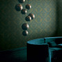 This luxurious and muted look is created with Resene Wallpaper Collection 24110 on the walls, paired with accents of gold and emerald.