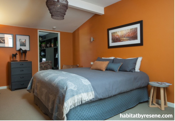 Dan’s bedroom is painted in Resene Moroccan Spice to match the photos of Zimbabwe and Australia in the room. The room is adjacent to the snug, which is painted in Resene Ironsand. “I couldn’t have a wishy washy colour next to the Resene Ironsand, the colour needed to be bold,” says Meg.