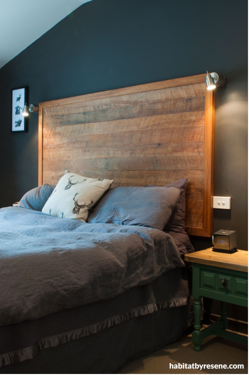 Resene Ironsand is painted on one of the walls in Tom and Meg’s other son Tim’s bedroom. The other walls (not shown) are Resene Half Oilskin.