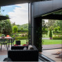 Resene Ironsand features on parts of house exterior as well as the interior of the snug. The dark colour highlights the beautiful view of the formal garden. The kwila deck is painted with Resene Kwila Timber Stain.