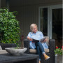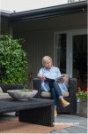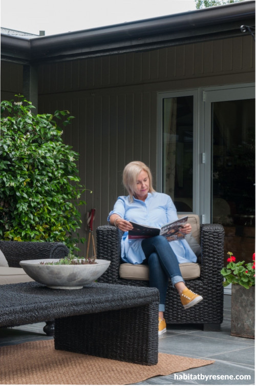 The outdoor seating area features Resene Napa, it’s a favourite place for Meg to read and relax.