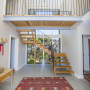 A mostly glazed atrium and ‘bridge’ separates two wings of the house. The walls are Resene Double Parchment.