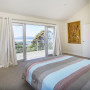 The main bedroom has the same pitched ceiling as the main living area, painted in Resene Rice Cake. THe walls are Resene Double Parchment.