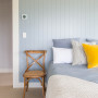 In their son's bedroom, natural rimu walls – also milled from the farm – look extra rich and warm against the other walls painted in Resene Quarter Silver Chalice. The trims and ceiling are painted in Resene Half Bianca.