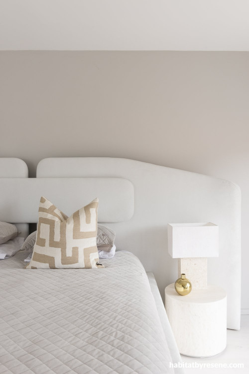 Resene Quarter Truffle, a unique touch of taupe, genteel and easy on the eye, was used for the master bedroom walls. This slightly darker neutral, compared to the rest of the home, gives this space a cosy and slightly more cocooning feel - the perfect choice for a place of relaxation and rest when you still want light colours.