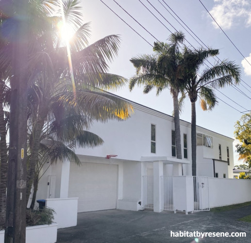 This home now has maximum street appeal, looking like a European delight with the green palms resting aside. Resene Half Blanc was painted on the front door and garage door, while Resene AquaShield mineral effect finish tinted to Resene Alabaster was used on the exterior, giving this home a lush Mediterranean look.