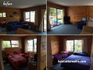 I feel very satisfied with how well we have accommodated our family of seven into a two-bedroom bach. For inside dining, the breakfast bar seats three and the table four, the living area seats all of us on two sofas and the sea urchin style poufs. The indoor/outdoor beanbags add extra seating when needed. In summer, we live on the deck mostly anyway. We sleep four kids in the bunkroom, one on the sofa bed, and us in the main bedroom. It all works perfectly!