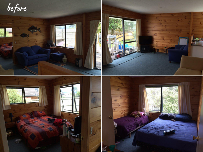 The dark and dingy bach before Jackie worked her magic.