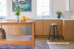 The long term plan is to remodel the 90s kitchen. In the meantime Jo and Jeremy have painted over the beige walls with soft blush Resene Just Right, and have updated the cabinets in Resene Brown Sugar.