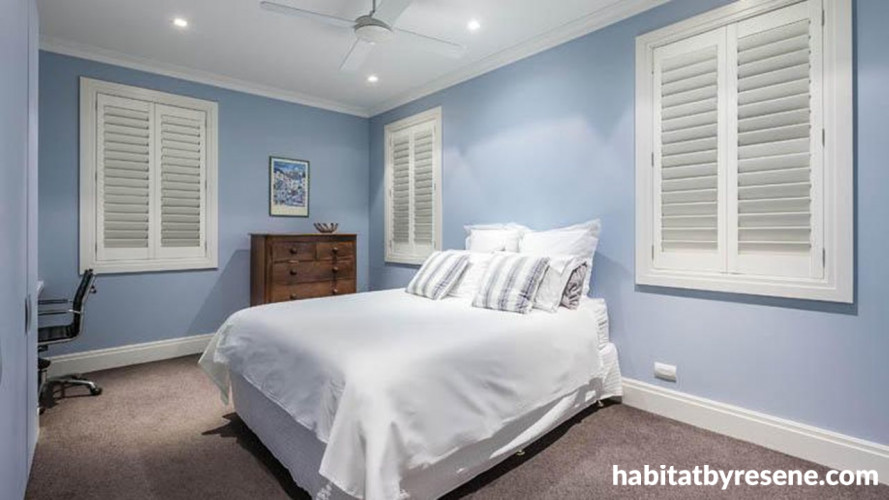 Resene Half Smokescreen is a moody blue for one of the bedrooms.