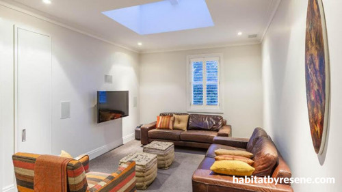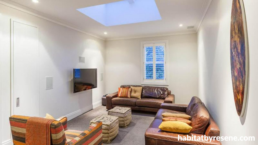Resene White Pointer is a restful background for the upstairs media lounge.
