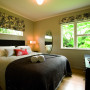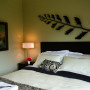 A simple restful palette of browns and creams for the bedroom with and inventive flax flower artwork.