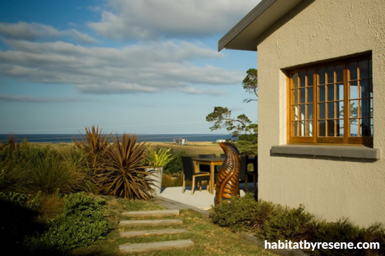 The sandy-coloured exterior of the Hiwi cottage, in Resene Napa with Resene Triple Napa window sills, echoes the beach-side setting. The thick walls were made of sand milled from the beach circa 1930.