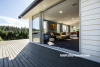 The living area has now been opened out to the deck. The weatherboards are painted in Resene Alabaster