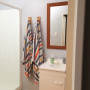 The downstairs laundry, toilet and bathroom are painted in Resene Half Duck Egg Blue. It was chosen because of its fresh, reflective edge to help combat the limited light in the area.