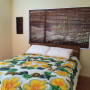 Both of the bedrooms are magnets for the sun (once again, dream property) and painted in soft Resene Popcorn – “a sophisticated yellow” says Juliet. In a spot in the master bedroom that gets intense sun during the day, a feature wall painted in deeper Resene Sea Crest soaks up the rays.