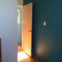 Not to be outdone by the living room, the master bedroom boasts a feature wall in cerulean blue Resene Sea Crest.
