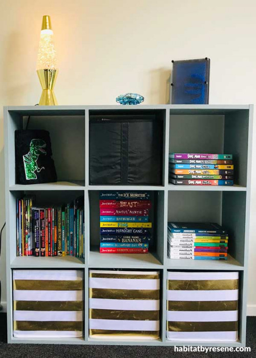 Vanessa revamped the white furniture in son Alex’s bedroom with Resene Half Innocence. The wall is painted in Resene Half Secrets.
