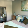 The guest room is inviting with subtle sage tones of Resene Haven painted on the walls and furniture painted in Resene Half Innocence. Ceiling and trims in Resene Alabaster.