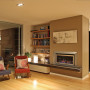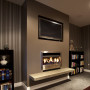 A fireplace in rich Resene Oilskin is flanked by Schoner Wohnen 2 1515-37 wallpaper, also available at Resene. The interior was designed by Yellowfox.