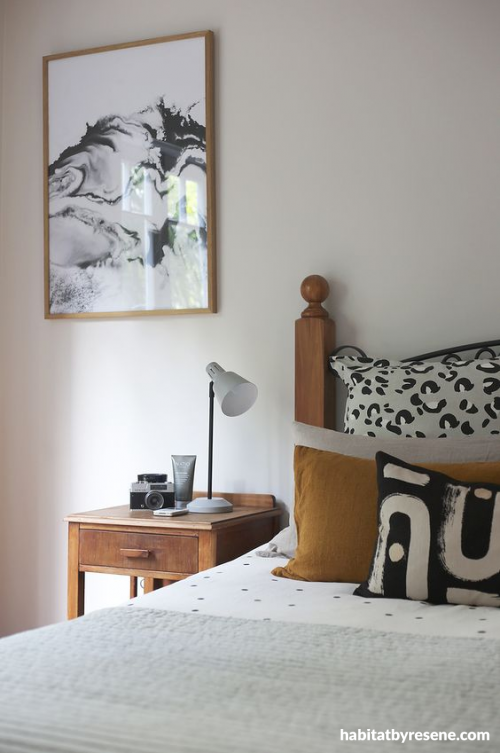 There's a natural beachy vibe to the house, perhaps most felt in the bedrooms, also painted in Resene Double White Pointer.