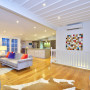 The state-of-the-art poured concrete kitchen is the centrepiece of the open-plan living area. French doors were used as opposed to sliding doors to keep the charm and character of the house alive.