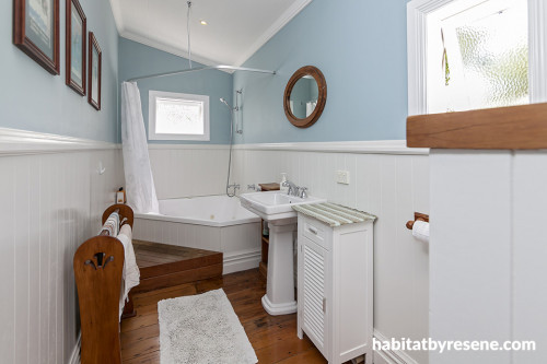 Walls in Resene Tranquil give the bathroom a fresh character feel.