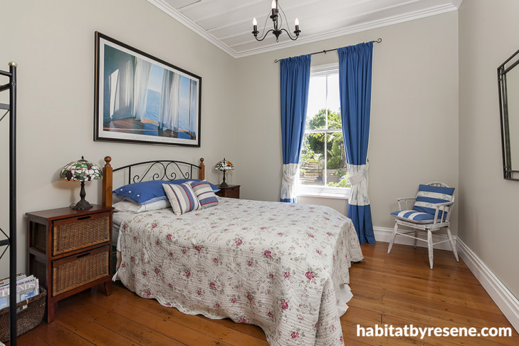 This time around, we chose colours that we knew would work well with the style and heritage of the house and which would complement the honey-coloured kauri floorboards. In keeping with its age, the house had originally had dark wood ceilings and trims so we felt it needed a fresh new start.