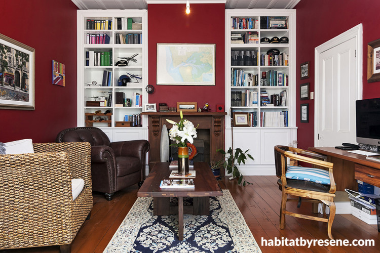 Kurt and Paula are especially proud of the way the study has turned out, with its cosy Resene Red Berry walls.