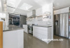 The kitchen overlooks the dining room and lounge, all painted in Resene Black White.