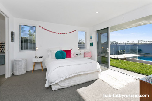 The kids chose the colours of their feature walls, with aqua blue Resene Riptide in 10-year-old Briar’s room and Resene French Grey in 12-year-old Conrad’s room. Their feature wall is made of pegboard, which allows them to arrange their artwork as they please and change it without having to put nails or Blu Tack® on the walls.