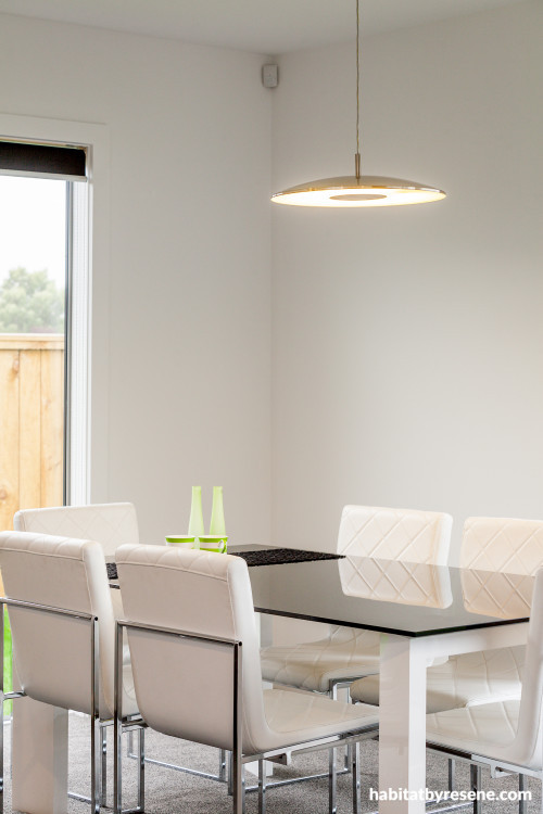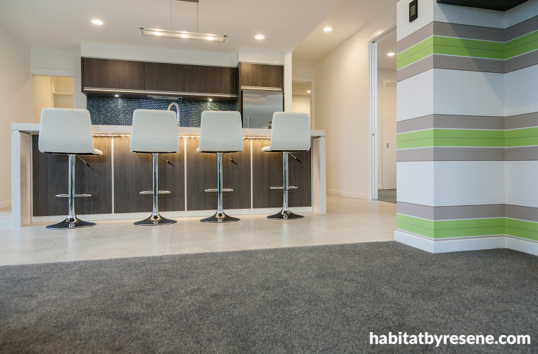 And the most popular colour? Resene Half Emerge by far (from The Range fashion colours fandeck) which is used on the walls of the main bedroom. “This would be the most liked colour according to all of the people who have been through the show home so far.”