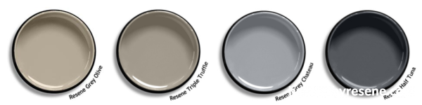 If you’re after something moody and modern, but still neutral, try Resene Grey Olive, Resene Triple Truffle, Resene Grey Chateau and Resene Half Tuna.