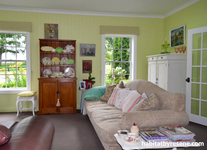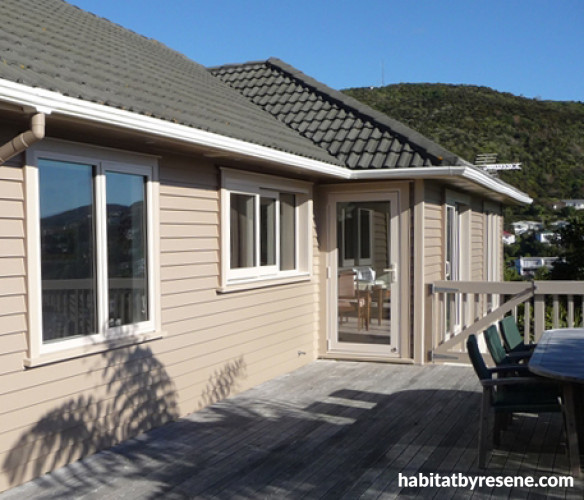 A large deck stretches across the northern side of the house so Liz and Pete chose a mid-toned colour for the weatherboards - Resene Triple Malta – that wouldn’t be blinding on the sunny days. The window surrounds are Resene Half Nullarbor.