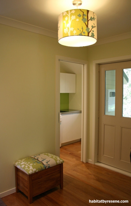 Resene Brie, being a warm yellow shade, was used in the entry, laundry and throughout the hallway to enhance natural light.