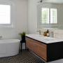 Resene Eighth Canterbury Clay was a perfect, warm, neutral shade for the painted wall areas of all of the bathrooms and complemented the tiling beautifully.