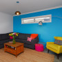 A feature wall of bright colour usually looks best in an otherwise neutral interior. Be aware that the colour of your other walls will affect the way you see your new bright colour. The closer to true white those walls are, the more vivid your new colour will look.